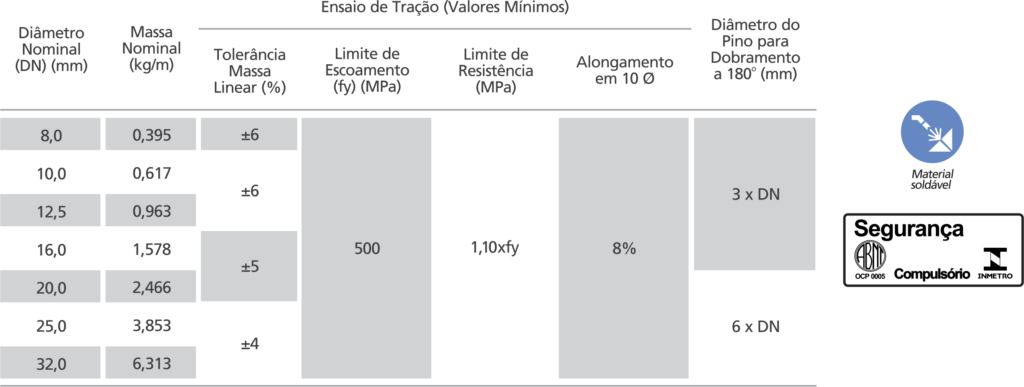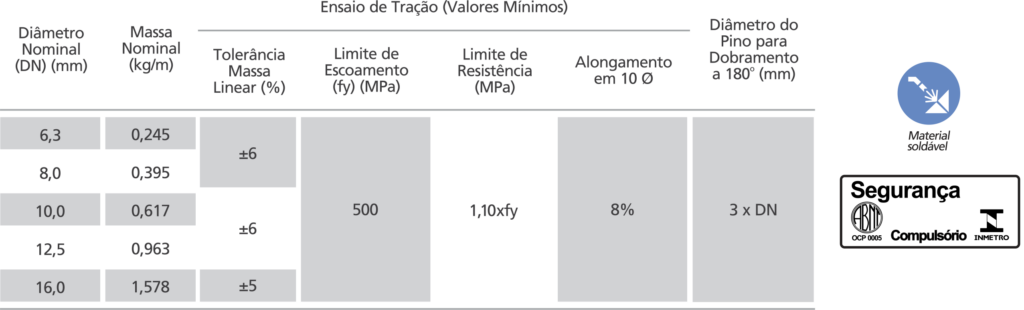 norma ABNT NBR 7480 CA50. Produto com Certificação